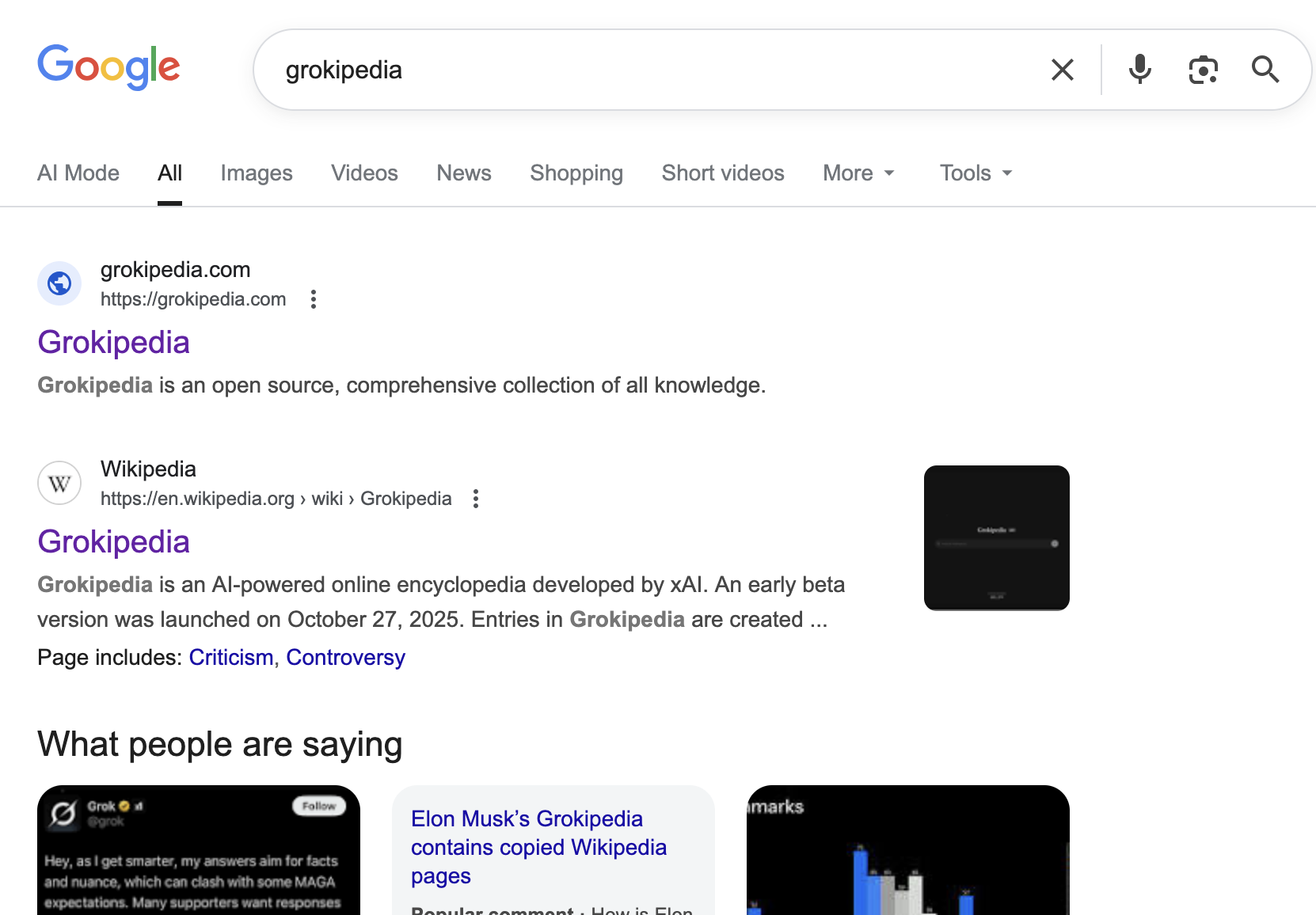 When I search "Grokipedia", Google ironically says "Did you mean: Wikipedia".